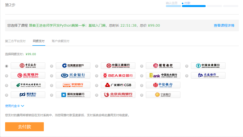 您可以選擇微信,支付寶或者網(wǎng)銀支付