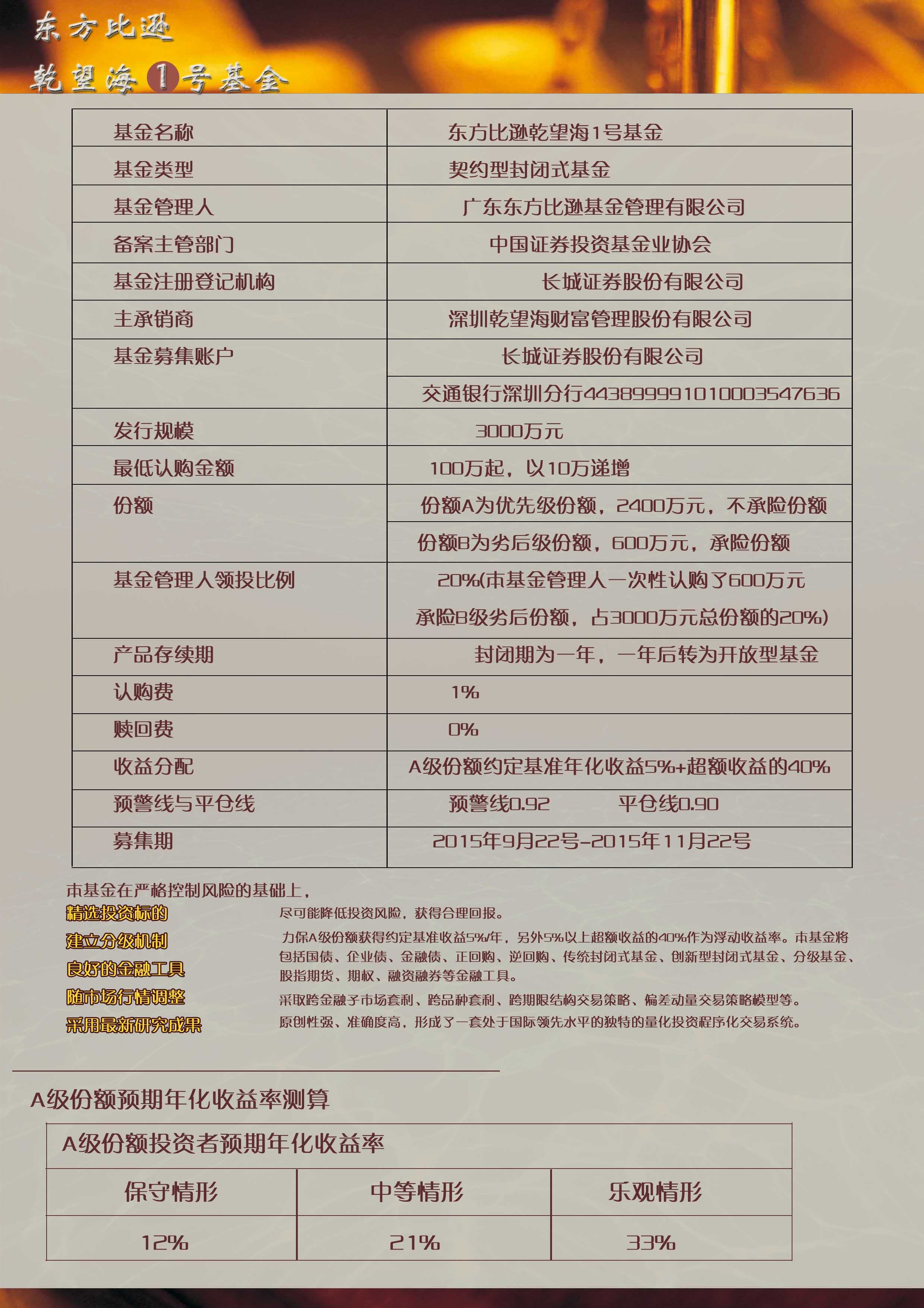 東方比遜乾望海固收一號(hào)基金展業(yè)宣傳彩頁