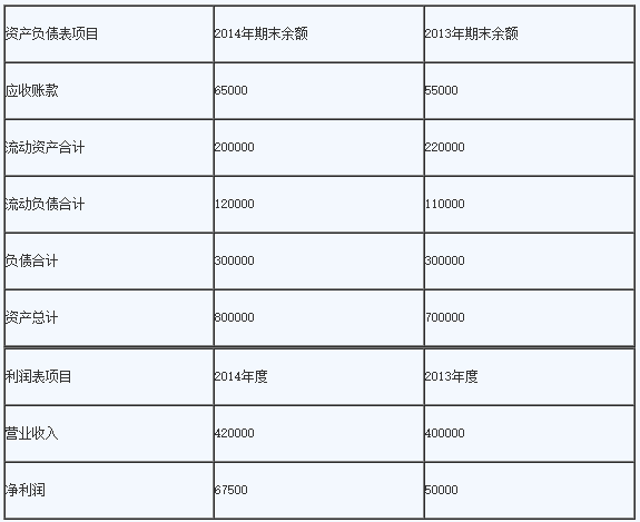2、已公司是一家上市公司,該公司2014年末資產(chǎn)總計為10000萬元,其中負債合計2000萬元。該公司適用的所得稅稅率為25%,相關(guān)資料如下: