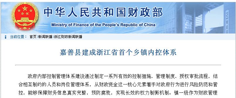 浙江省嘉善縣建成浙江省首個鄉(xiāng)鎮(zhèn)內(nèi)控體系