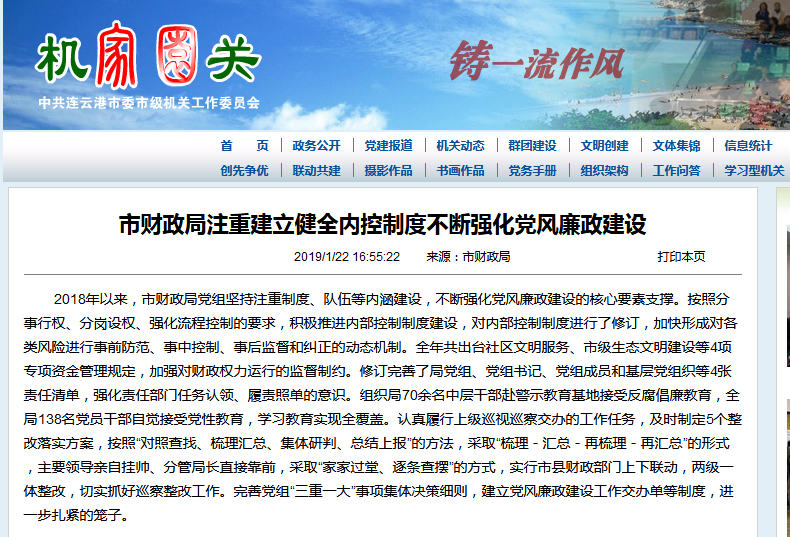 連云港市財政局注重建立健全內(nèi)控制度不斷強(qiáng)化黨風(fēng)廉政建設(shè)