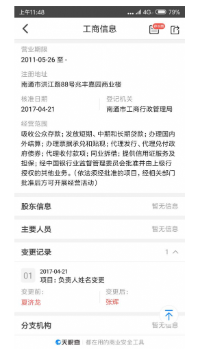 據(jù)天眼查數(shù)據(jù)顯示,2017年4月21日,廣發(fā)南通分行法人代表由夏濟(jì)龍變更為張輝,并持續(xù)至今。然而,從本張較大金額的罰單來看,時(shí)隔2年,該行違規(guī)貸款的問題依然凸顯,并增添了更多違規(guī)事項(xiàng)。