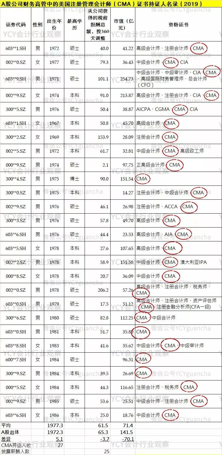根據(jù)《YCY會計行業(yè)觀察》今年對于上市公司財務(wù)高管的持證情況進行的調(diào)查,共有27位A股財務(wù)高管獲得了CMA認證。