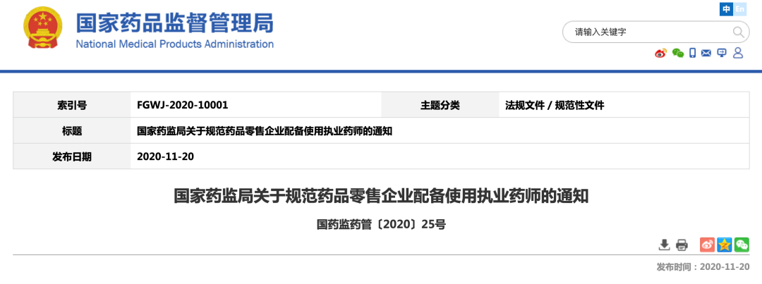 此外,《通知》還強(qiáng)調(diào),藥品零售企業(yè)執(zhí)業(yè)藥師配備使用要求與本通知要求不一致的,應(yīng)在2020年12月底前按本通知整改到位。