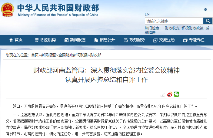 財(cái)政部河南監(jiān)管局:深入貫徹落實(shí)部?jī)?nèi)控委會(huì)議精神認(rèn)真開展內(nèi)控總結(jié)和自評(píng)工作