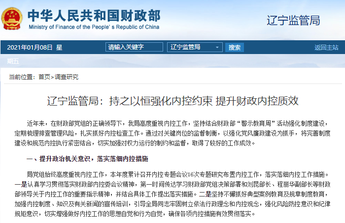 遼寧監(jiān)管局:持之以恒強(qiáng)化內(nèi)控約束?提升財(cái)政內(nèi)控質(zhì)效