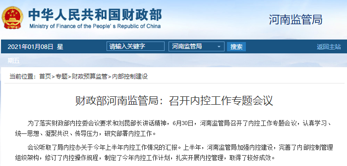 財政部河南監(jiān)管局:召開內(nèi)控工作專題會議