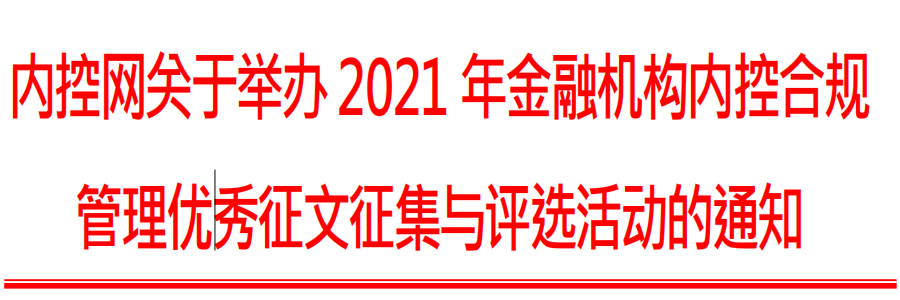內(nèi)控網(wǎng)關(guān)于舉辦2021年金融機(jī)構(gòu)內(nèi)控合規(guī)管理優(yōu)秀征文征集與評(píng)選活動(dòng)的通知