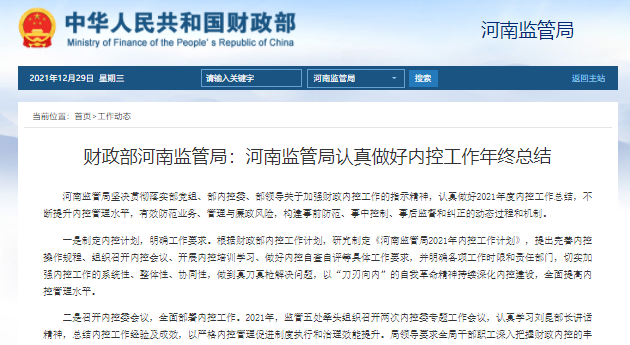 財(cái)政部河南監(jiān)管局:河南監(jiān)管局認(rèn)真做好內(nèi)控工作年終總結(jié)