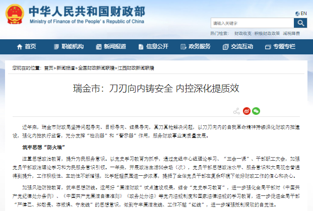 近年來,瑞金市財政局堅持問題導(dǎo)向、目標(biāo)導(dǎo)向、結(jié)果導(dǎo)向,真刀真槍解決問題,以刀刃向內(nèi)的自我革命精神持續(xù)深化財政內(nèi)控建設(shè),強(qiáng)化內(nèi)控執(zhí)行監(jiān)督,充分發(fā)揮“檢測器”和“警示器”作用,服務(wù)財政事業(yè)高質(zhì)量發(fā)展。