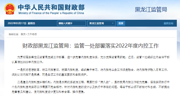 財政部黑龍江監(jiān)管局:監(jiān)管一處部署落實2022年度內(nèi)控工作