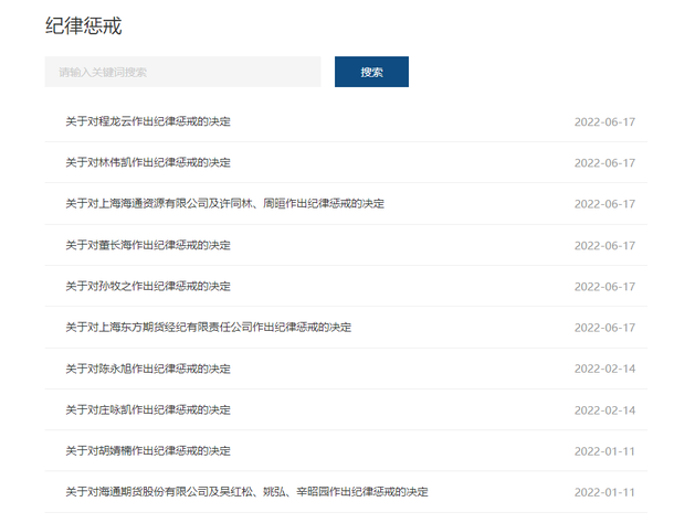 為此,中期協(xié)依據(jù)《期貨從業(yè)人員執(zhí)業(yè)行為準(zhǔn)則》等相關(guān)規(guī)定, 給予海通期貨、吳紅松、姚弘及辛昭園“訓(xùn)誡”的紀(jì)律懲戒。