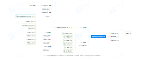 股權(quán)穿透信息顯示,國君風(fēng)險唯一一家股東為國泰君安旗下全資子公司國泰君安期貨有限公司(簡稱:國泰君安期貨)。也就是說,國君風(fēng)險是國泰君安的全資孫公司。