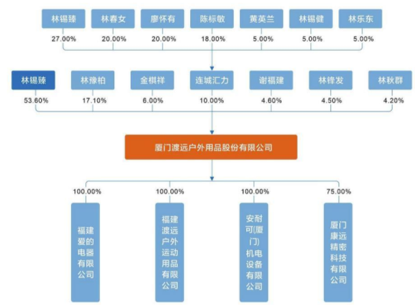同時(shí),渡遠(yuǎn)戶外也顯現(xiàn)出較為明顯的家族特征。其中,公司控股股東、實(shí)際控制人、董事長(zhǎng)兼總經(jīng)理林錫臻直接持有53.6%的股份,通過(guò)連城匯力間接持有公司2.7%的股份,合計(jì)持股56.3%。林錫臻的兩個(gè)妹妹,林秋群直接持有公司4.2%的股份,出任公司總經(jīng)理助理;林春女間接持有公司2%的股份,在核心子公司福建愛(ài)的擔(dān)任銷售經(jīng)理。林錫臻的堂兄林錫健間接持股0.5%,是福建愛(ài)的的核心技術(shù)人員。另外,林錫臻的堂姐夫林樂(lè)東間接持股0.5%,在福建愛(ài)的行政部工作。(研究員 李璐)