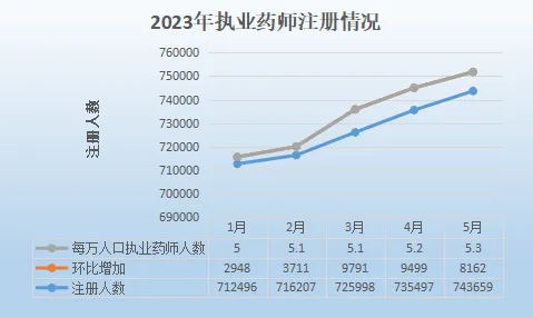 根據(jù)以上數(shù)據(jù)可知,截至2023年5月底,全國(guó)累計(jì)在注冊(cè)有效期內(nèi)的執(zhí)業(yè)藥師743,659人,環(huán)比增加8,162人。