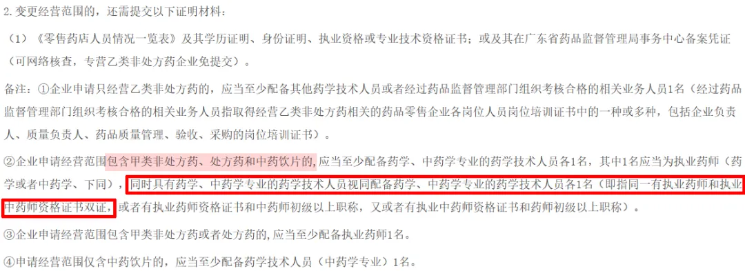零售藥店同時(shí)具有藥學(xué)、中藥學(xué)專業(yè)的藥學(xué)技術(shù)人員視同配備藥學(xué)、中藥學(xué)專業(yè)的藥學(xué)技術(shù)人員各1名。