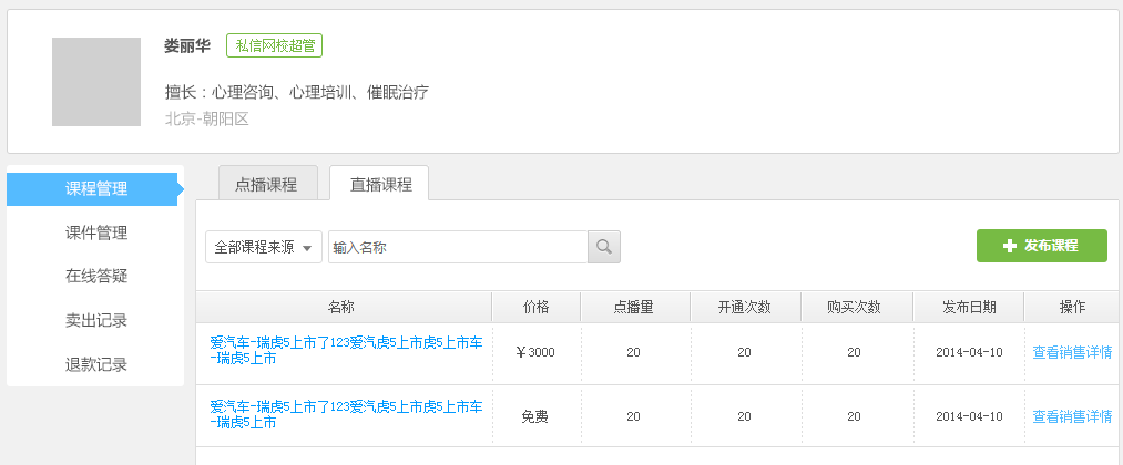 能力天空計(jì)劃于2016年5月中旬發(fā)布老師管理產(chǎn)品,該產(chǎn)品融合了現(xiàn)有網(wǎng)校名師和成員管理產(chǎn)品,強(qiáng)化了網(wǎng)校與老師課程內(nèi)容合作的課程發(fā)布、課程開(kāi)通/購(gòu)買(mǎi)數(shù)據(jù)統(tǒng)計(jì)、老師參與學(xué)員提問(wèn)的解答等功能。