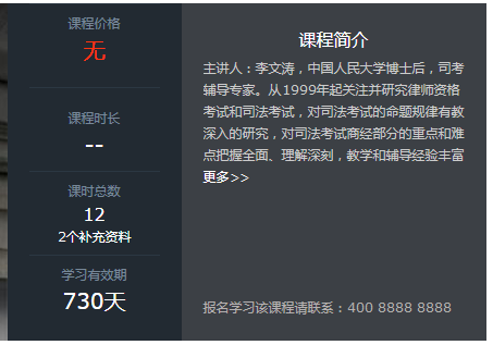 2 課程發(fā)布后,在課程詳情頁查看效果是這樣的,課程價(jià)格顯示為“無”,購買按鈕位置顯示“提示語”