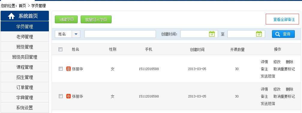 5 管理員可以一次性查看所有學(xué)員的全部備注了。更便于您的統(tǒng)一提醒與管理。