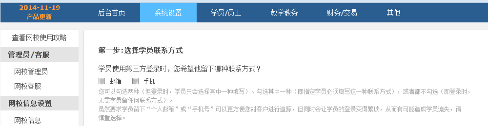 2 然后按照指引,開始第一步設(shè)置:選擇您希望留下的學(xué)員聯(lián)系方式